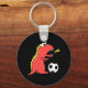 Customisable funny soccer keychain with a colourful illustration of a funny dinosaur with a fire breath playing soccer. This funny keychain would make a great gift for boys and men who love soccer.