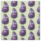 Funny eggplant fabric design with a pattern of a big eyed cartoon eggplants on customisable light green background. This funny eggplant design will appeal to a cook, vegetarian, vegan and people who love eggplants and vegetables.