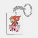 Funny Cartoon Gnome Riding Flying Pig Key Ring