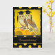 A cute humourous graduation congratulations card featuring an original painting of two owls in gold, yellow and black.