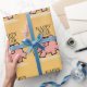Funny cartoon illustration of a little pink pig with "Happy New Year" (not customisable) on transparent background. Design on wrapping paper.with golden background and a colour of your choice. You can easily change background colour, size and position of the design by clicking the customise button. Other models with funny cartoon illustrations of pigs are available. Matching greeting card, clothing, office products, craft products and more... Fun for Chinese New Year of the Pig 2019. ---- -- "The Pig (豬) is the twelfth and the last sign of the Earthly Branches (亥). In the continuous Sexagenary cycle, every twelfth year corresponds to Hai, and is commonly called "the Year of the Pig" (豬年). There are five types of Pigs, named after the Chinese elements. In order, they are: Metal, Water, Wood, Fire, and Earth.