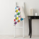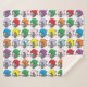 Multi-coloured cartoon sheep pattern on cosy blanket.