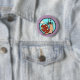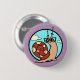 Funny snail graphic illustration round pin back button. Background colour can be customised.