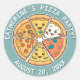 Funny cartoon style pizza party customisable Classic Round Sticker. Bring a dash of humour to your pizza gatherings with our Funny Cartoon Style Pizza Party Sticker! Designed for pizza lovers, this playful sticker is your go-to choice for inviting friends to a birthday bash or pizza party. Personalise it with your name and the date, and get ready for a fantastic time enjoying mouthwatering pizza slices. Whether it's a birthday celebration or International Pizza Day, this sticker is the perfect way to share your love for pizza with anyone who can't resist a cheesy, saucy delight.