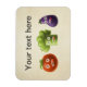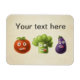 Funny vegetables magnet with customisable text and a funny illustration of three cute big eyed cartoon vegetables - red tomato, green broccoli and violet eggplant. This vegetables magnet would be perfect as a gift for cooks and people who love cooking and vegetables.