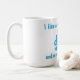 Cute ceramic mug with cartoon anime graphics of an orange cat inside a blue coffee cup. Blue text reads I like cats and coffee and maybe two people. Great gift idea for any cat fancier.