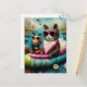 Funny Cat and Squirrel Float Trip Postcard