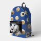 This playful backpack features a quirky emoji cat print and a customisable front pocket where you can upload a photo of your pet or child. A perfect funny cat backpack for school, travel, or gifting. Loved by animal lovers, students, and fans of expressive, fun style.