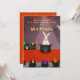 Naughty birthday cats observe the rabbit in the magic hat with bad intent. This cute birthday invitation depicts an imaginary cat birthday party with a magician performing the famous Rabbit out of the hat trick. Behind the stage, mischief is in the making! Personalise the name on the front and add your party details. This invite is perfect for pre teens and tweens who enjoy little visual humour as well as any cat lover, any age.