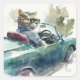 This hilarious watercolor illustration showcases a mischievous cat with sunglasses cruising in a fancy sports car. A must-have for animal lovers with a sense of humour!