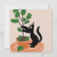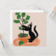 Funny Cat Fig Tree Potted Plants Hand Drawn Card