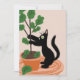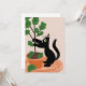 Funny Cat Fig Tree Potted Plants Hand Drawn Card