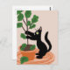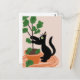 Funny Cat Fig Tree Potted Plants Hand Drawn Postcard