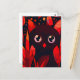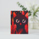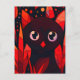 Funny Cat Hiding Behind Autumn's Leaves Anime Style Postcard, Red, Black, Orange and white colors, kawaii cat, cute funny black cat, animals,pet, gift, international cat day, cat day.