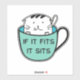 Celebrate the undeniable truth of cat logic with this sticker. The "If It Fits, It Sits" design features an adorable small cat cozily perched in a mug, making it the perfect choice for anyone who appreciates a cat's unique sense of space.