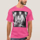 I give wanted to give this a 4 instead of a 5 because these Basic DARK T0shirts run unexpectedly SLIM or Narrow. Which is great if you do not have a potbelly, but I have a paunch. It isn't the shirt's fault that I've got a beer belly. The design and shirt itself is a quality cotton shirt. The color is more of a deep purple, but still a very pretty color. The Basic DARK T-shirts run a bit SLIMMER than the Basic Ts. The neck is a fraction narrower (or seems to be narrower) also. I'm a paunchy middle-aged woman and my neck is 12 inches (31cm) thick and the neckline fell about the same as in the photo of the man, and I had the desire to tug it a bit. So if you're a thick necked man or like loose shirts, be aware these are slimmer shirts. Once I get rid of my lockdown paunch it'll look great. The shirt washed well in cold water with no apparent bleeding. We don't have a dryer, so it hung dry. Did not shrink. Love the colors and the design. The design looks smaller on my shirt than it does on the model on-line. But still, it looks good on the shirt. The printing looks as it does on the model, just the size seems fractionally smaller. Washed garment in cold water, hung dry and design appeared unaffected.