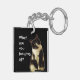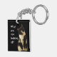 Black and white cat with attitude slogan "What are you looking at" on acrylic keychain.