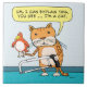 This funny cartoon illustration features a cat holding a bird and a hacksaw. The cat has a perfectly logical explanation for this scenario. This one's sure to be a big hit with every cat lover! ©2015 Chuck Ingwersen