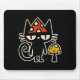 Funny Cat With Mushroom Hat Black Cat With Toadsto Mouse Mat