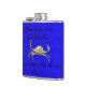Featured on this hip flask is a blue swimmer crab with a funny catching crabs logo.