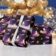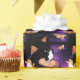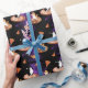 Funny cats riding pizza on space wrapping paper