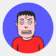 An original cartoon drawing of a funny looking character. Completely imaginary so not based on anyone in particular he just kind of appeared from nowhere. A nice bold vector graphic design in bright colours with lots of personality.