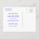 This funny Save-the-Date postcard features a checklist of important events that lead up to the big day. Text is light blue on white and blue on pink. Alternate version available in red and black: