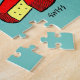 Funny Cheese Tasting Party Smalltalk Cartoon jigsaw puzzle features a wedge of Jack talking up a cute Gouda. Background is teal blue, but can be changed to any other color as desired. Makes a cool doorprize at such a gathering as well as a fun challenge for guests. Perfect at Christmas, too, for your favorite Turophile.