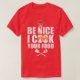 I give wanted to give this a 4 instead of a 5 because these Basic DARK T0shirts run unexpectedly SLIM or Narrow. Which is great if you do not have a potbelly, but I have a paunch. It isn't the shirt's fault that I've got a beer belly. The design and shirt itself is a quality cotton shirt. The color is more of a deep purple, but still a very pretty color. The Basic DARK T-shirts run a bit SLIMMER than the Basic Ts. The neck is a fraction narrower (or seems to be narrower) also. I'm a paunchy middle-aged woman and my neck is 12 inches (31cm) thick and the neckline fell about the same as in the photo of the man, and I had the desire to tug it a bit. So if you're a thick necked man or like loose shirts, be aware these are slimmer shirts. Once I get rid of my lockdown paunch it'll look great. The shirt washed well in cold water with no apparent bleeding. We don't have a dryer, so it hung dry. Did not shrink. Love the colors and the design. The design looks smaller on my shirt than it does on the model on-line. But still, it looks good on the shirt. The printing looks as it does on the model, just the size seems fractionally smaller. Washed garment in cold water, hung dry and design appeared unaffected.