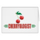 CHERRYOLOGIST - Humourous title for "experts" of cherries. If you love cherry cobbler, cherry pie, cherry cola, cherries jubilee, cherries and more cherries, then this funny design is for you. Features a cluster of cherries with little green leaves. Whether you like to pick 'em from a cherry tree in your backyard or at an orchard, or buy 'em at the grocery store or market, or cook 'em up in the kitchen, you're a cherryologist! Unique item makes a great gift for a chef, cook, gardener, vegetarian, vegan or anyone who loves ripe, red cherries! Mmm, delicious!