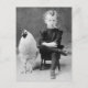 Unique old photo of a young boy smoking a cigarette with a chicken beside him.