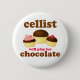 This funny cello lover button has cupcake design with Cellist Will Play For Chocolate slogan. Cute stocking stuffer for cello players in orchestra.