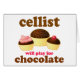 Funny chocolate cupcake music design with Cello - Will Play For Chocolate quote. Cute cello gift for music teachers and cellists in orchestra.