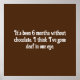 Funny quote for those of us who LOVE chocolate but trying to wean off. "I've been 6 months without chocolate, I think I've gone deaf in one eye."
