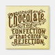 If you're a writer / author, an actor, an artist or anyone else in a profession where you face a lot of rejection, you probably know that nothing makes you feel better afterward than a piece of chocolate. This original, funny design says, "Chocolate -- the confection that cures rejection" in brown retro / antique lettering. It's made to look vintage Victorian, sort of like an old magazine advertisement. One dose of chocolate and you'll have the motivation to try again.
