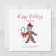 Funny Christmas 2022 Gingerbread Man In Face Mask Card Greeting Card is designed with a cute gingerbread man wearing a Covid-19 mask and red Santa hat. He has peppermint candy for buttons and is holding a candy cane. The greeting is "happy holidays" in red trendy hand lettering followed by custom year and personalised with family's last name. Click personalise option and follow the prompts.