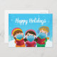 Funny Happy Holidays 2020 holiday postcard with cute Christmas carolers in face masks to fight off Covid during the pandemic. Stay safe during the Coronavirus quarantine by social distancing and wearing masks for your friends and family. Happy holiday humour cards. Great for a company or family.