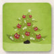 Customisable funny Christmas coasters with a vector illustration of a Christmas tree with cartoon cat heads as ornaments looking at fish bone ornaments. On the top of the tree there is a little star and snow is falling all over. This fun Christmas artwork features a Christmas colour scheme of red and green colours and will appeal to a cat lover and someone who likes funny illustrations. You can show your love for cats and winter by wearing this funny pine tree shirt not only on Christmas, but also on New Year's Eve and during the whole winter, too.