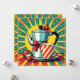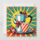 A funny unique Christmas card that has a comic book pop art style coffee pot and cup. A hilarious message on the back about coffee, Christmas and panicking that you can personalize if wanted.