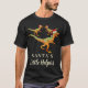 Christmas dinosaur funny quote T-shirt. Time for a roaring good prehistoric Jurassic style Christmas with these funny velociraptor dinosaurs wearing Santa hats with the Xmas quote ‘Santa’s little Helpers’ Festive raptor elf humour brings dino fun to the office or a family gathering and will delight dinosaur lovers. Unique original artwork by artist Catherine Sweetman
