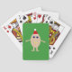 This awesome deck of playing cards features a funny cartoon of an egg with arms and legs. The egg has arms and legs and a small crack in its head exposing the white inside. It has blue eyes with a black pupil and a big smile where the yolk of the egg can be seen. The eggshell looks rough. This Christmas egg is wearing a santa hat ready to party this holiday season.