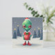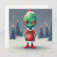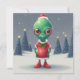 Funny Christmas Green Alien and Christmas Trees Holiday Card
