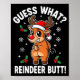 Funny Christmas Guess What Reindeer Butt Santa Hat Poster