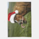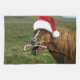 Funny Christmas horse with Santa hat smiling Tea Towel