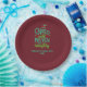 Cute funny Christmas Holiday Nice Until Proven Naughty Red paper party plates. Can be personalised with the name of your party and the year