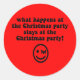 What happens at the Christmas party, stays at the Christmas party! Funny Christmas party tshirts and gifts form your office Christmas party, work Christmas party and neighbourhood Christmas party. Cool and humourous Christmas party tees, button, mugs and more for the Christmas holidays. Funny smile with wink.