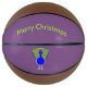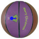 This awesome basketball features a bright and bold Christmas Peacock wearing a Santa hat. The bird has a bright blue belly with a beautiful collection of feathers held proudly behind. The eyespots are blue, brown and green. The Peacock has big black eyes and a cute little grey beak.