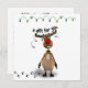 Funny and cute Christmas illustration featuring a reindeer with Christmas lights on his horns and reindeer footsteps. This funny gift certificate is perfect for your small business or to gift friends and family.