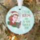 The smiling retro woman on this funny Christmas double-sided ornament is holding a bottle of rum and saying, "I Put the RUM in Pa-Rum Pum Pum Pum." She's wearing a Santa hat. If the very idea of the holiday season makes you want to drink, then this is the hilarious design for you.