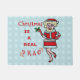 If you think "bah humbug" during the Christmas holiday season and you also enjoy tacky, funny Christmas designs, this is the hilarious doormat for you. Santa Claus the drag queen is dressed in a lovely red dress with white trim, showing off his hairy legs and holding a sprig of mistletoe while making a grumpy face. The text says, "Christmas is a real drag."
